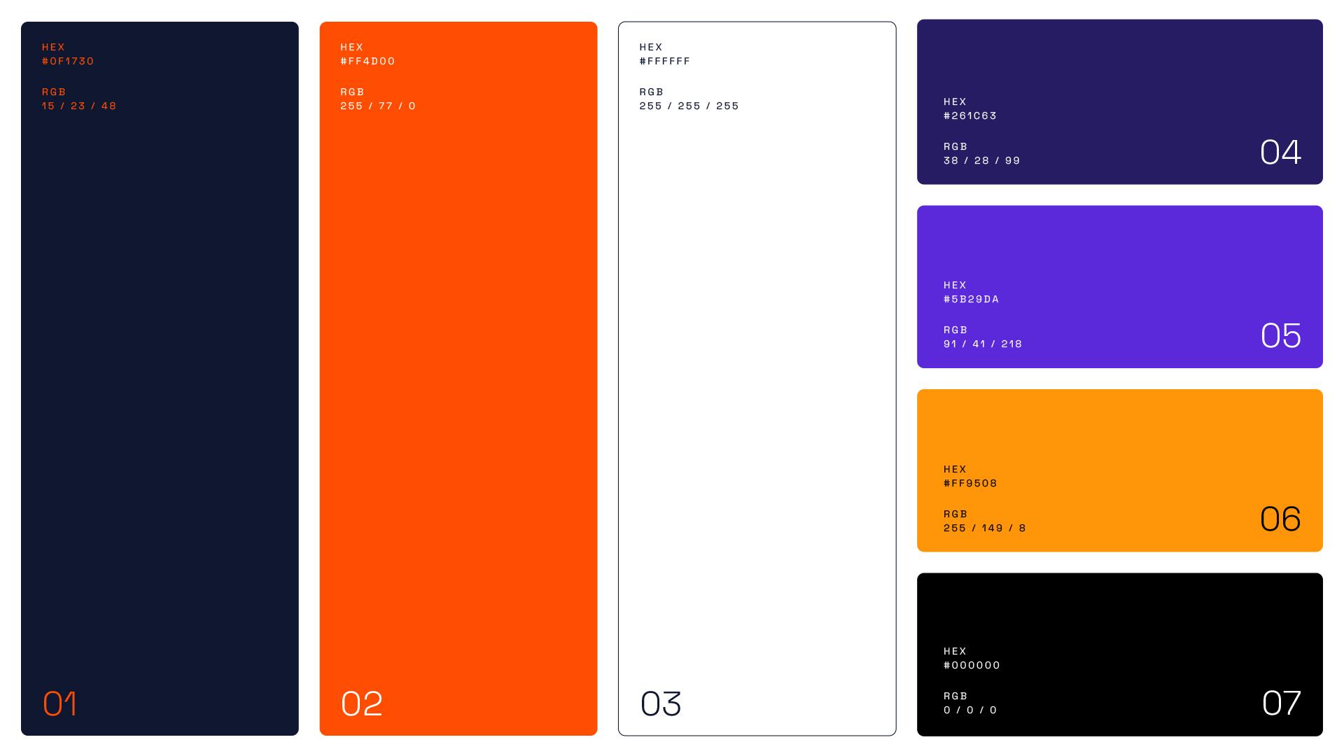 A paleta mescla profissionalismo, energia e contrate, para que seja diferenciada e notada por onde passa, assim reforçando a presença da marca em todos os pontos de contato, como a Van (carro chefe da empresa), uniformes, redes sociais OOH.