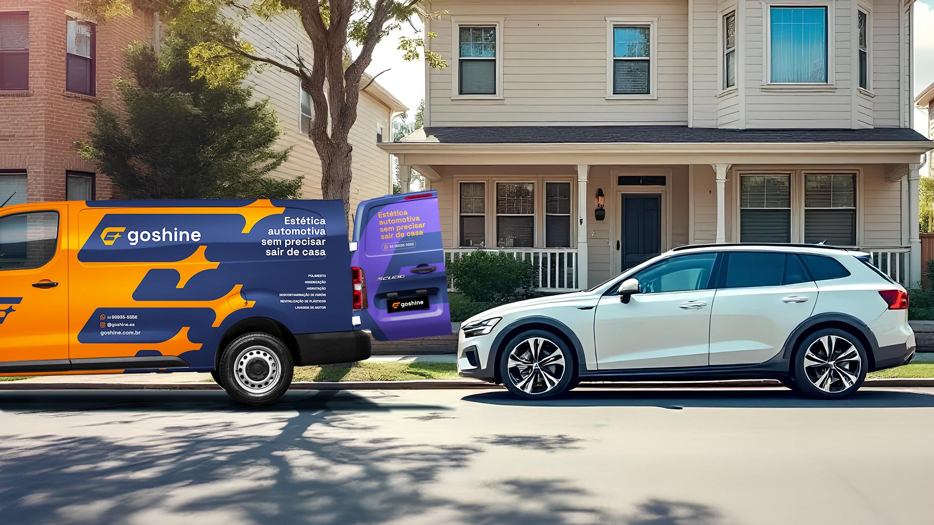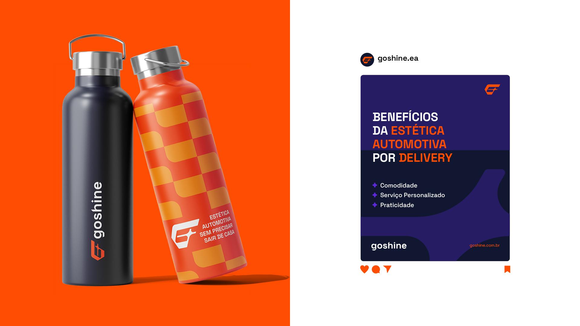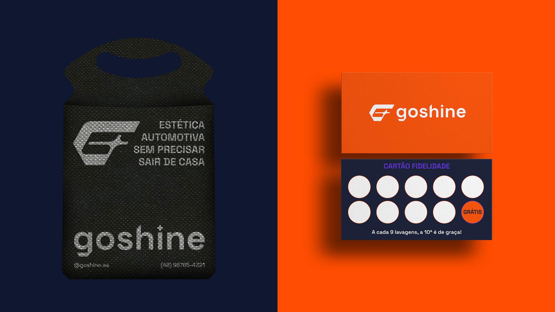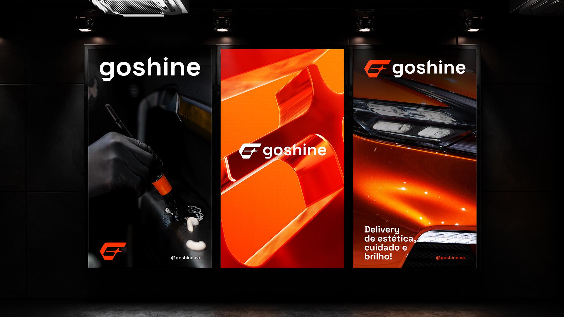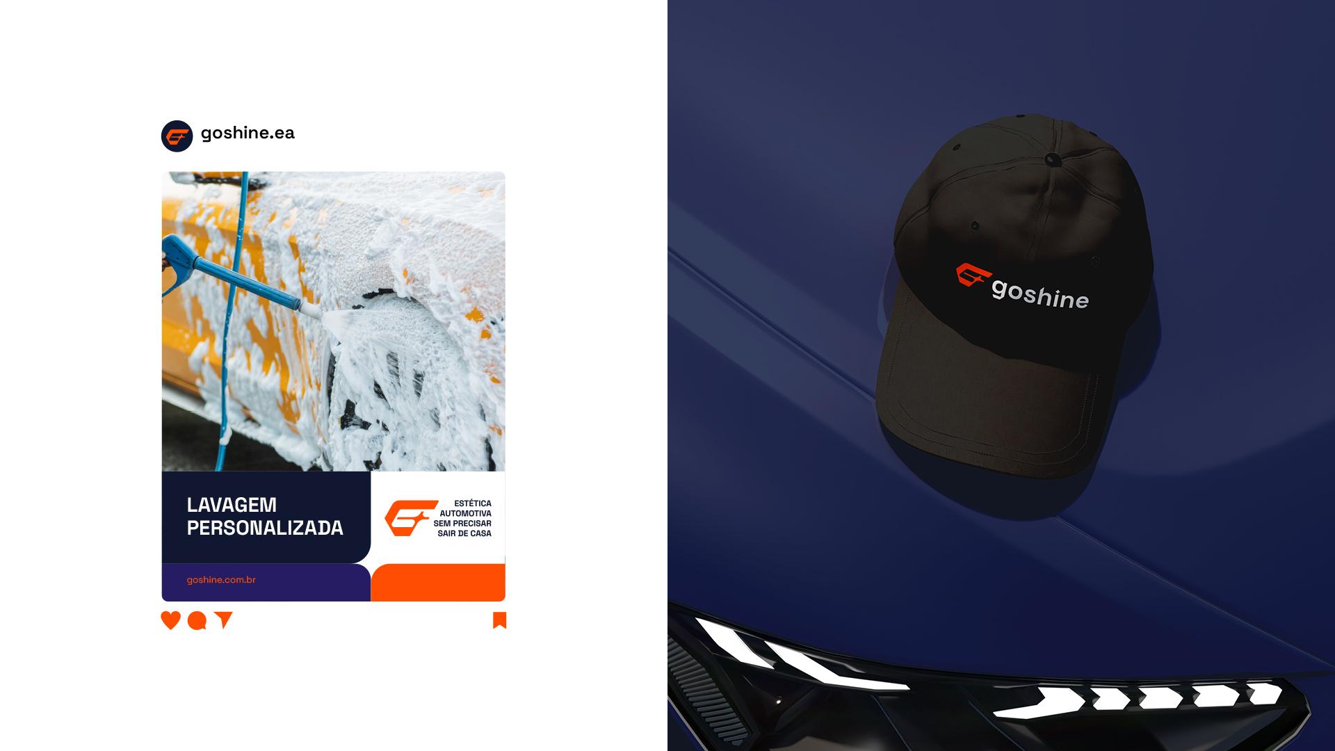 Para a Goshine, desenvolvemos o nome e toda a identidade visual da marca, posicionando-a como referência em lavagem automotiva delivery com foco em praticidade e inovação.